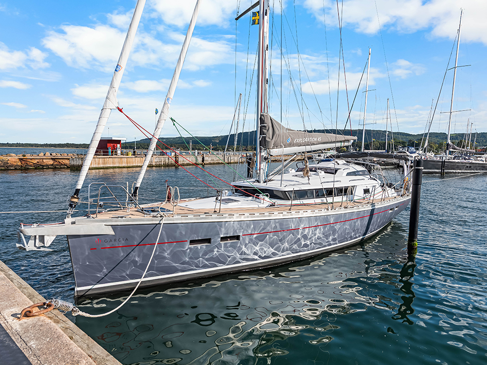 Segelpaketet i Hydranet (full-lattad stor, solent och staysail) kombineras med spinnakerbom, uppgraderade ST55 primärvinschar, elektrisk vinsch och all manövrering i sittbrunnen för enkel och säker shorthanded-segling. Navigationen är toppmodern med komplett B&G-system, dubbla 12” Zeus-plottrar, Halo 20+ radar, AIS, autopilot och en helt oberoende reservautopilot.
