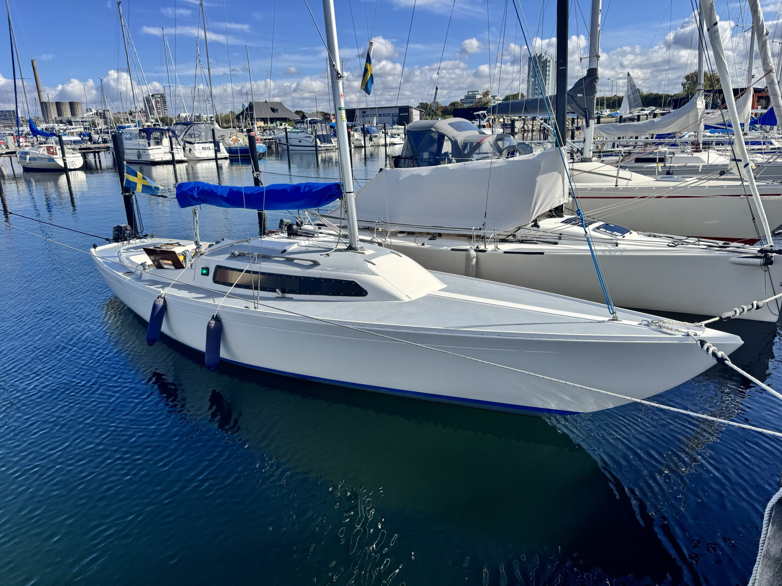 Nu säljes en välseglande och populär H-båt, känd för sina fina seglingsegenskaper både för kappsegling och tursegling. Denna båt har främst använts för tursegling och erbjuder tre kojplatser, varav en dubbel i förpiken. Men är även utrustad för kappsegling. Finns mätbrev från 2 olika tillfällen.