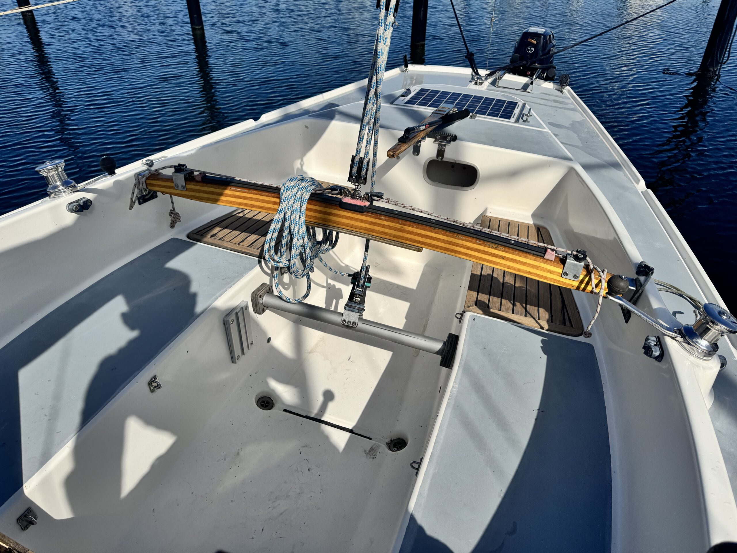 Säkerhet & tillbehör: Brandsläckare, hängstroppar, extra linor, extra rorkultsförlängare.