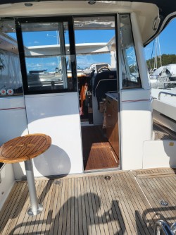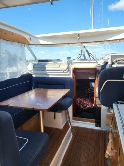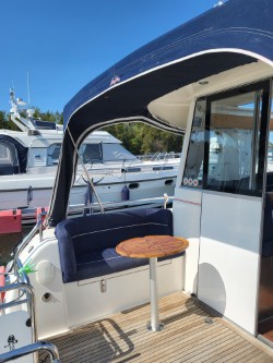 Upplev skärgården med stil i Nimbus 30 Nova S HT – en exklusiv motorbåt som kombinerar förstklassig prestanda med genomtänkt komfort och funktion. Med praktisk sidodörr från förarplatsen och ett öppningsbart hardtop-tak får du både skydd och den frihetskänsla som bara en öppen båt kan erbjuda. Perfekt för både dagsturer och längre äventyr till sjöss. Båten är i bra skick, aldrig bottenmålad och har full servicehistorik.